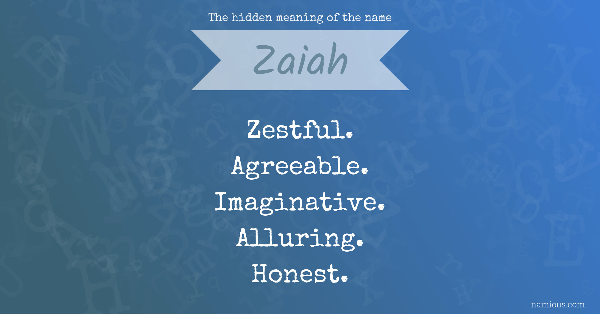 "Zaiah is a zestful, agreeable, imaginative, alluring and honest person."