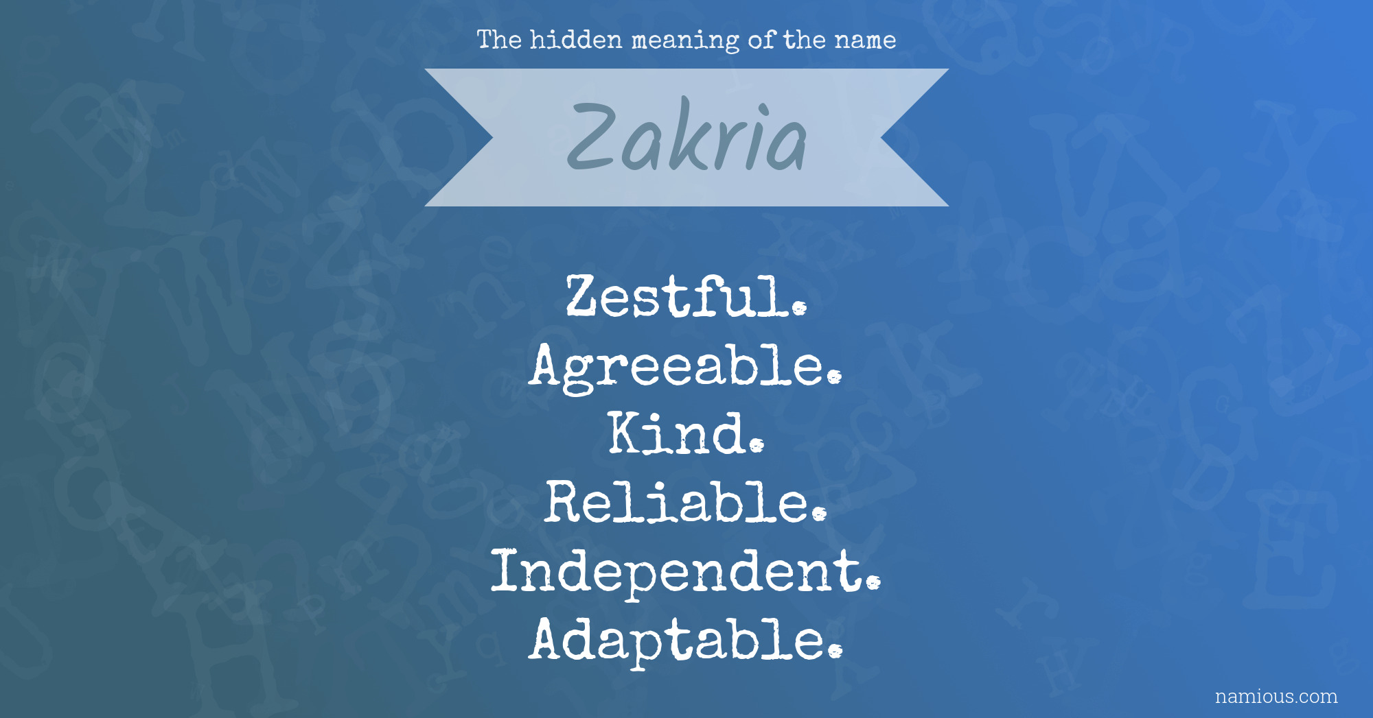 "Zakria is a zestful, agreeable, kind, reliable, independent and adaptable person."