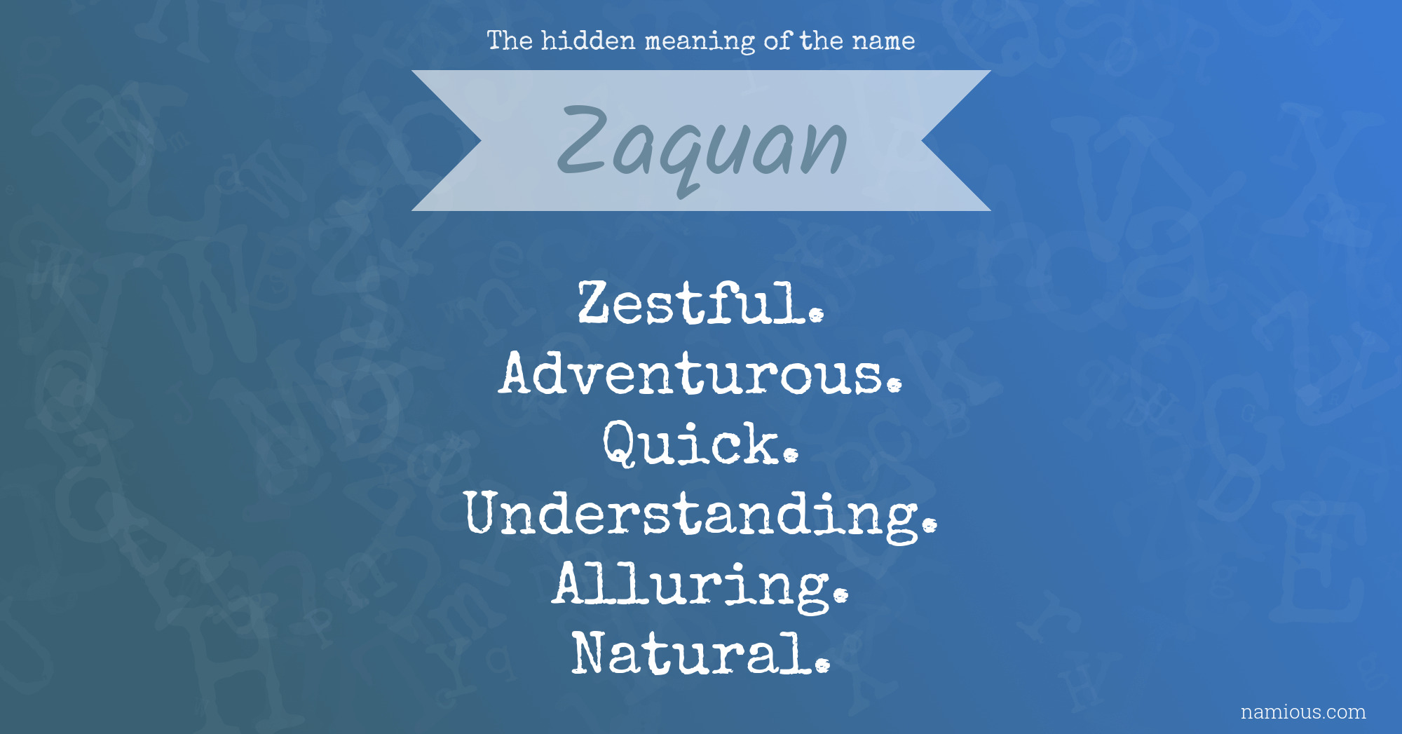 "Zaquan is a zestful, adventurous, quick, understanding, alluring and natural person."