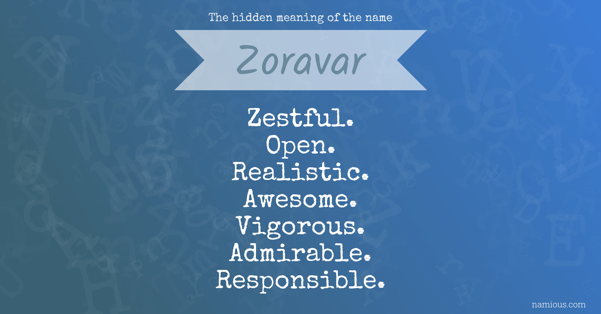 "Zoravar is a zestful, open, realistic, awesome, vigorous, admirable and responsible person."