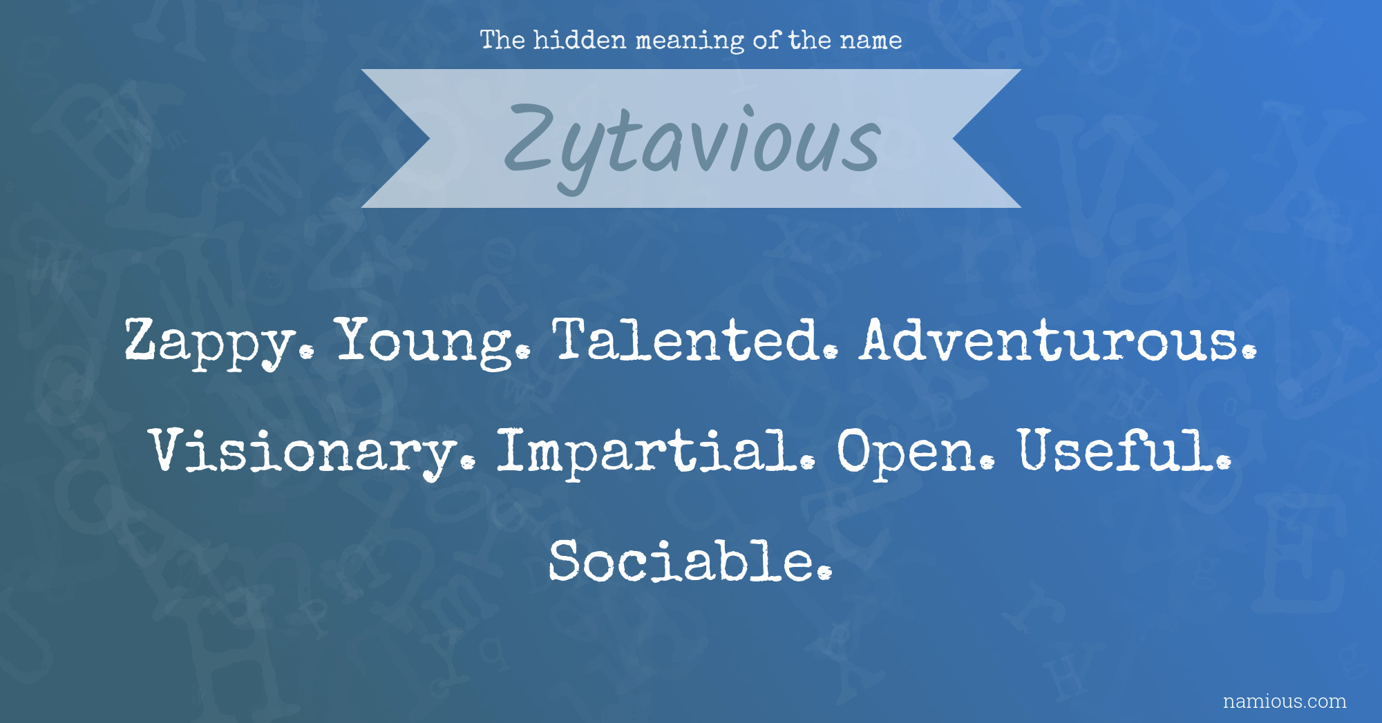 "Zytavious is a zappy, young, talented, adventurous, visionary, impartial, open, useful and sociable person."